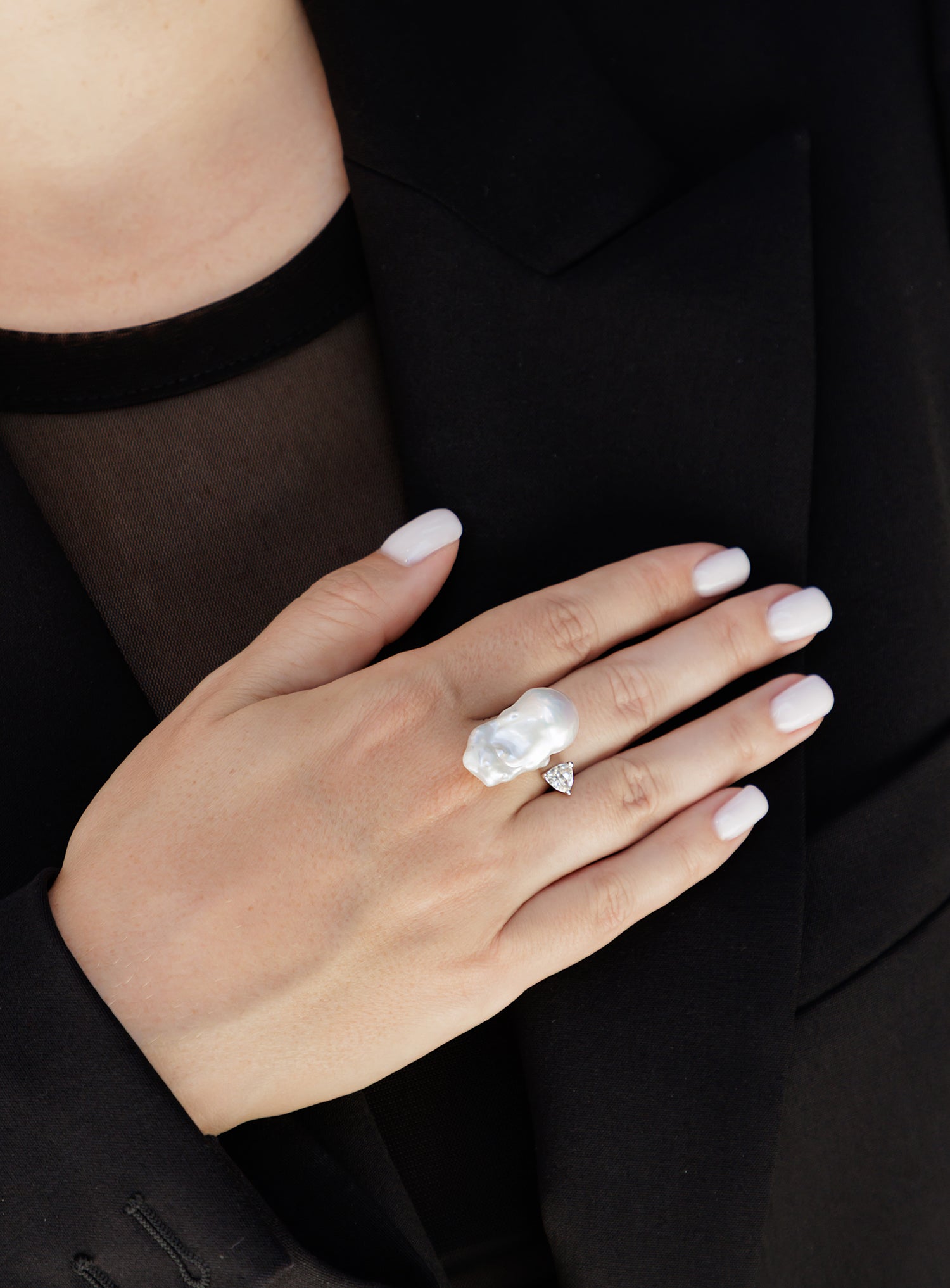 Due to the nature of baroque pearls, the shape of each pearl may vary slightly, which makes each of these rings a one-of-a-kind piece. This ring is adjustable in size